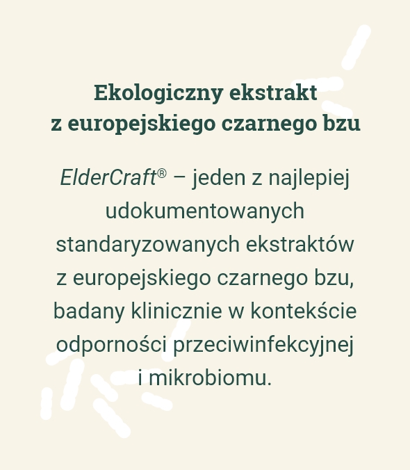 Jeden z najlepiej udokumentowanych standaryzowanych ekstraktów z czarnego bzu, badany klinicznie w kontekście odporności przeciwinfekcyjnej i mikrobiomu
